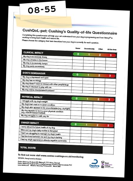 Ankieta może wykazać poprawę w jakości życia w czasie terapii trilostanem. Zaleca się wypełniać ją co trzy miesiące i dzielić się tymi informacjami ze swoim lekarzem weterynarii.