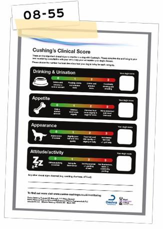 Aby pomóc Ci ustalić prawidłową dawkę leku, the Royal Veterinary College w Londynie stworzył przydatne narzędzia do monitorowania pacjenta, dzięki którym skoncentrujesz się na najistotniejszych obszarach dotyczących obserwacji Twojego psa z zespołem Cushinga.